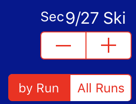 This double-section lets you know how many different activities SkiMax has determined you have performed during your day (here 27). A run can be either skiing, in or on a lift, or just simply resting. If the control button at the bottom is seleting ‘All Runs’ then the data reflects the total run-count. In this mode, the Avg Slope panel reports the average slope calculated from all SKI-runs. For this the lifts are not considered.